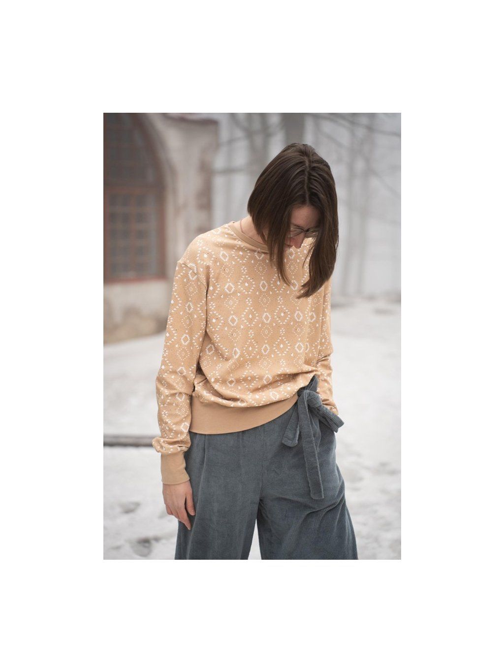 Střih je oblíbený oversize- vejde se pod něj pohodlně břicho s dvěma zákusky.