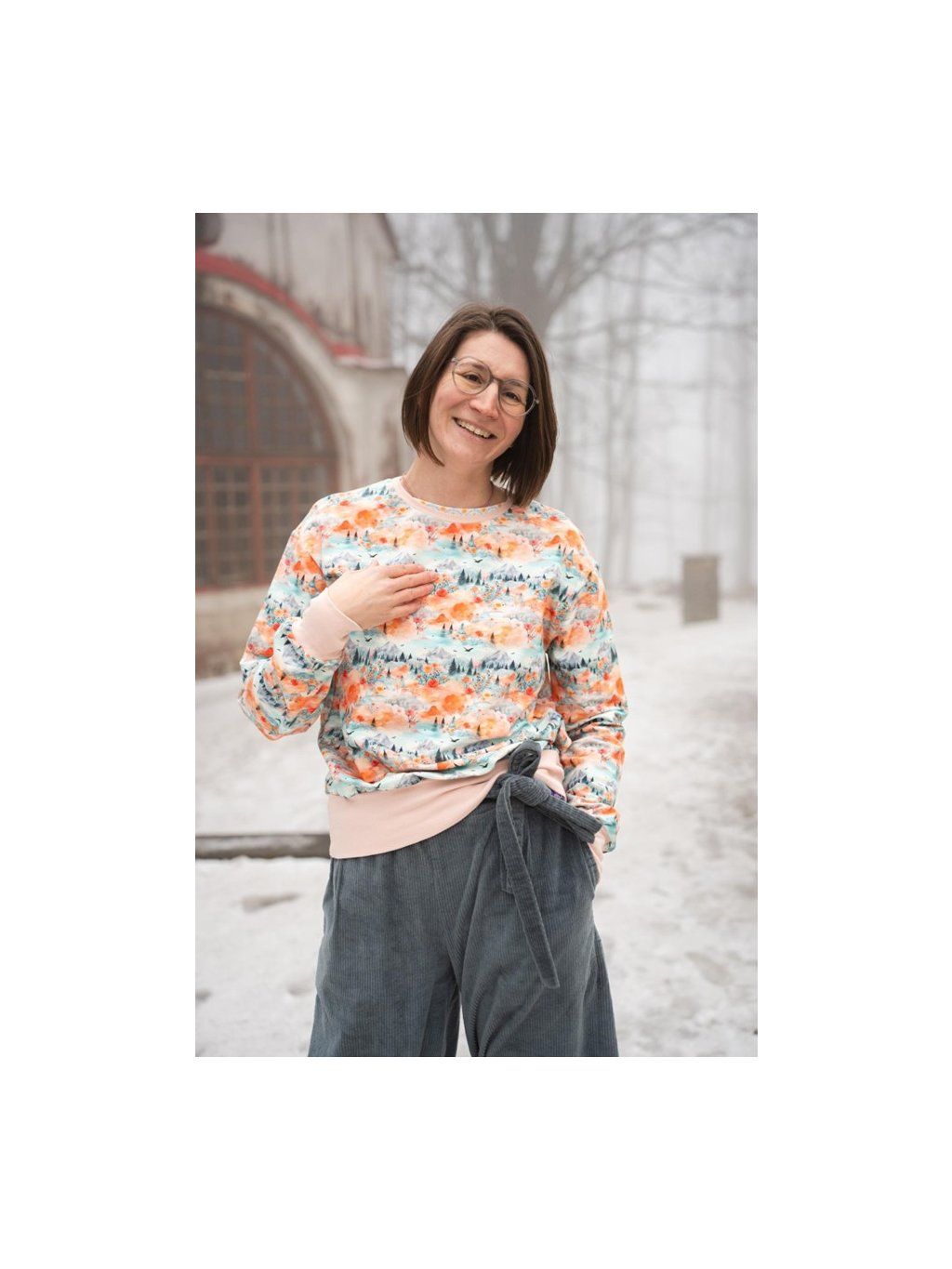 Střih je oblíbený oversize- vejde se pod něj pohodlně břicho s dvěma zákusky.
