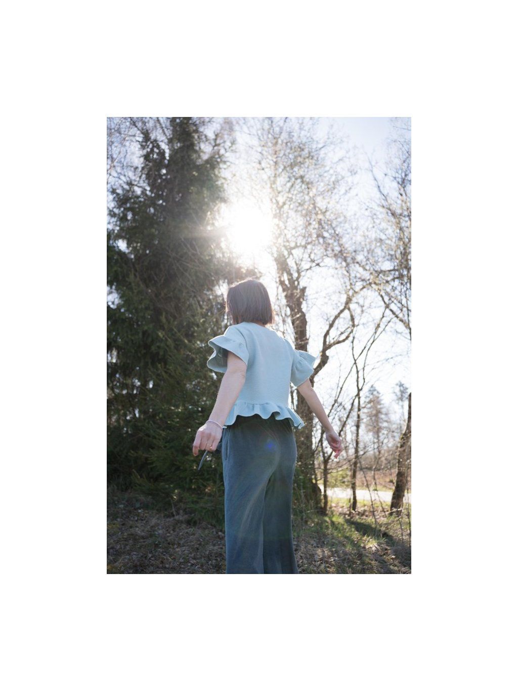 Kousek, který vzešel z radosti nadcházejícího jara. Po dlouhé zimě jsem měla potřebu ušít něco, kde si můžeme dovolit volnost, rozevlátost..zastrkávání spodních vrstev do kalhot už bylo dost, jaro volá!